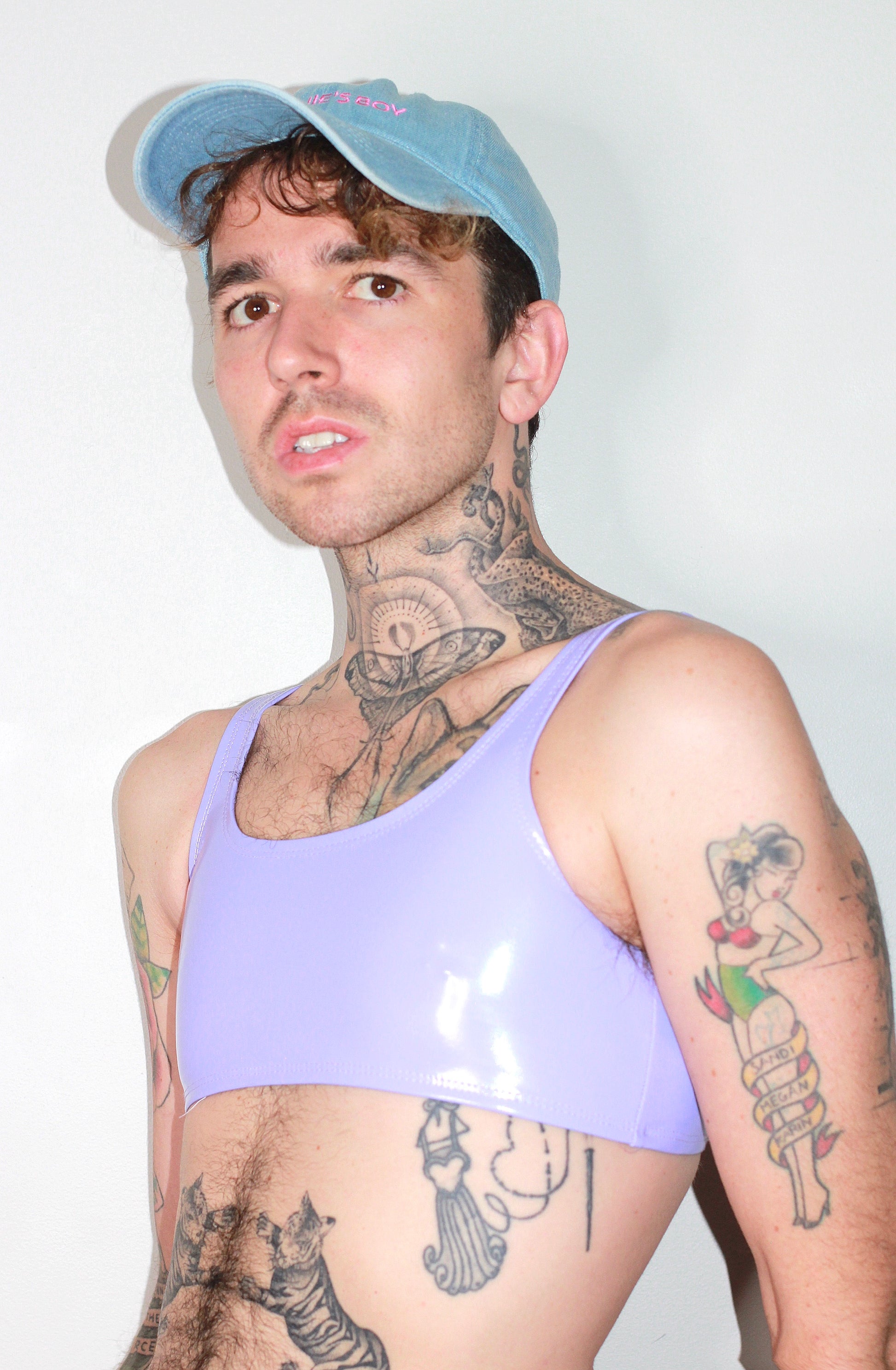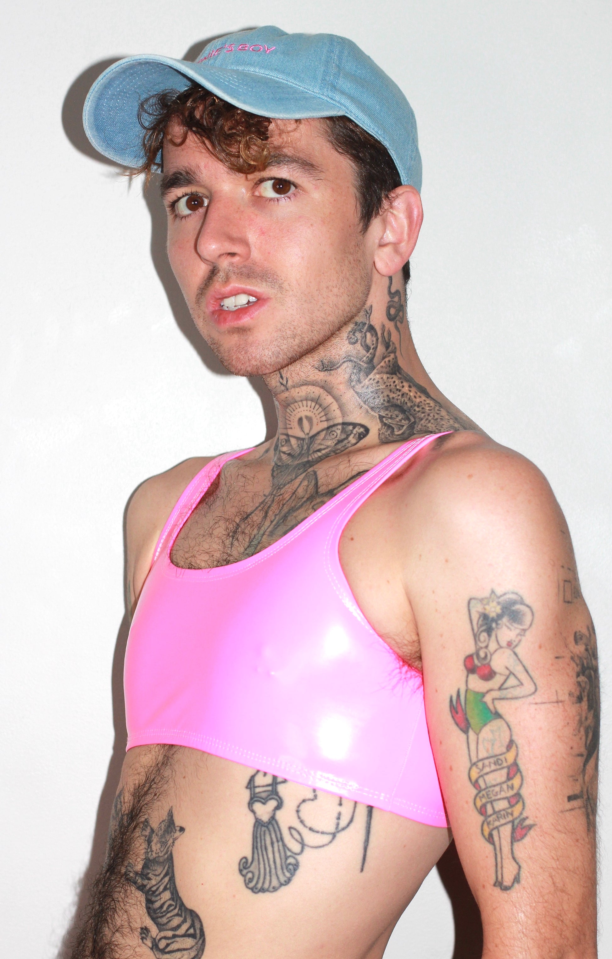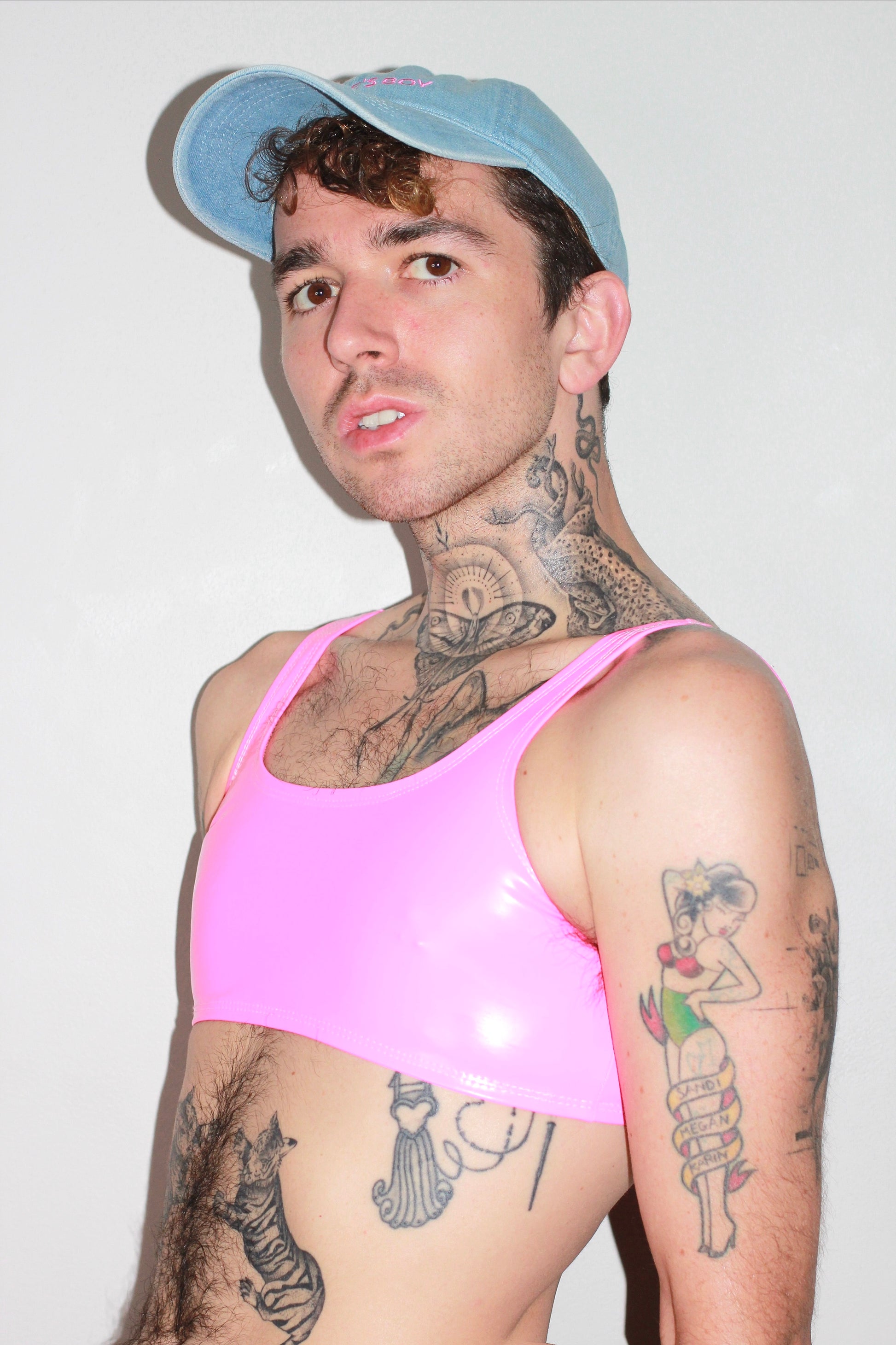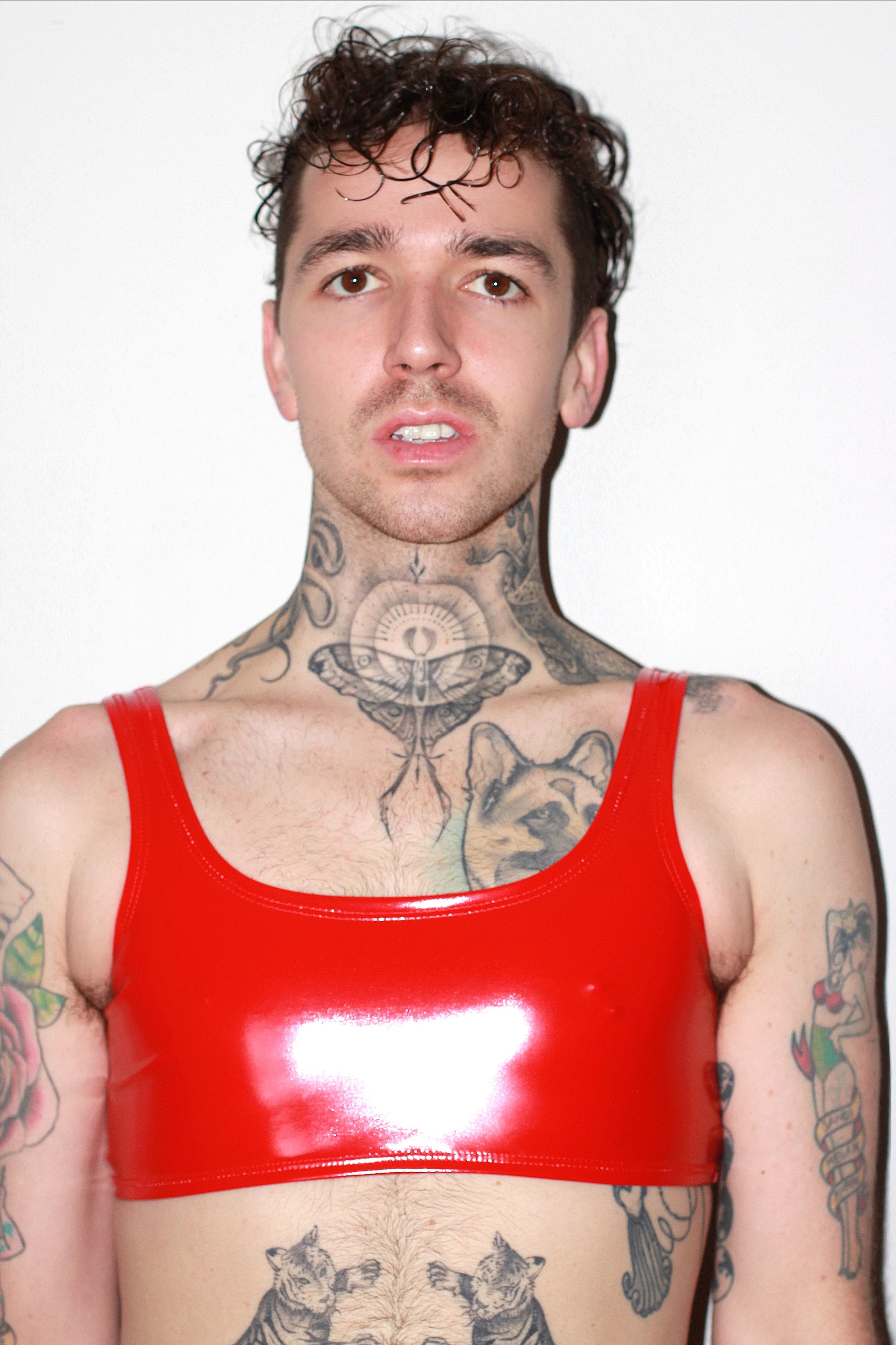 hiny PU coating on poly spandex Vinyl. Content: 90% Poly 10% Spandex